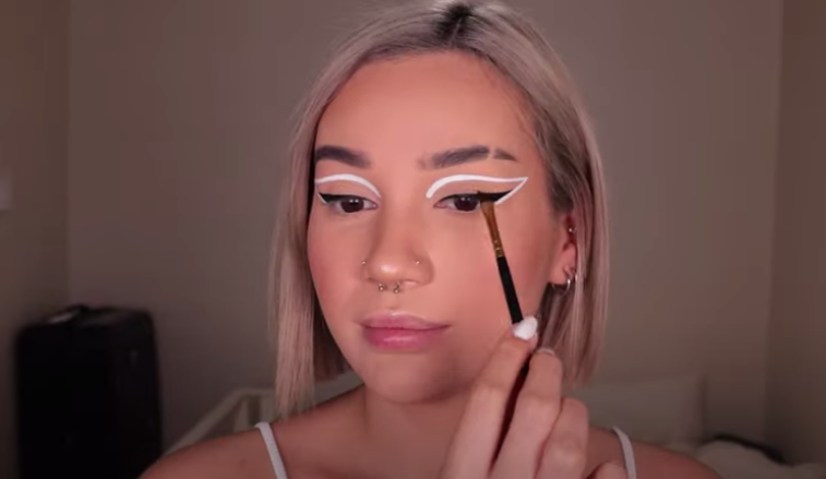 To recreate this style you’ll need a steady hand, a makeup wipe, and white eyeliner. Firstly, begin at the cut crease in line with your inner corner and slowly drag the tip straight across the eyelid. Then, straighten up the line using a makeup wipe and embrace your gorgeous masterpiece.