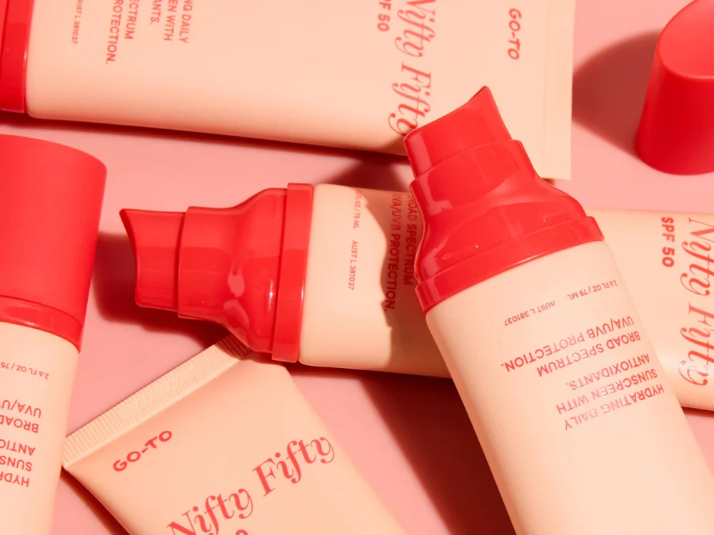 The Nifty Fifty sunscreen is a lightweight tinted sunscreen that naturally atones to the skin, offering a light formula.
