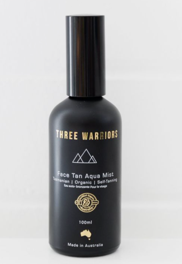 Three Warriors face tan aqua mist is an ultra-fine mist specially formulated to give the face, neck and decolletage a natural looking tan. It is infused with pure Tasmanian water which is rich in minerals and electrolytes to hydrate, soothe and soften the skin. This is perfect for sensitive skin due to its vegan and organic formula.