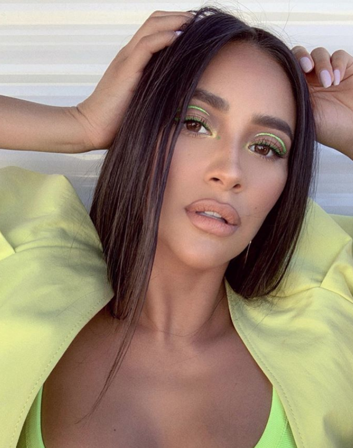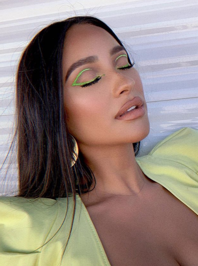 US celebrity Shay Mitchell also demonstrates the eyeliner doesn’t have to be just restricted to the waterline. Her exaggerated eyeliner is on trend for 2020, with her eyeliner floating well above her eye and into the cut crease.