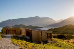 Set amongst the Southern Alps of Glenorchy, you will feel like you are in a world of your own at Aro Ha’s stunning 21-acre paradise. Purposely designed to blend with nature, the structures only add to the spectacular skyline and scenic views of its sub glacial environment—no matter where you look, there is a postcard worthy vista that will take your breath away. Fulfilling an ethos of self-sufficiency, the retreat operates on a permaculture and sustainable framework, sourcing naturally available resources from its environment.